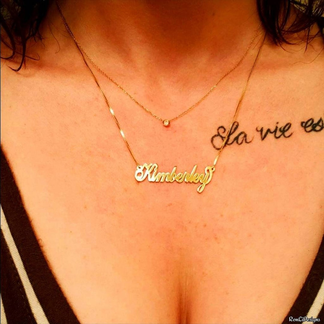 14k Gold Name Necklace Kimberly Style Name Necklace Solid 14k Etsy Uk